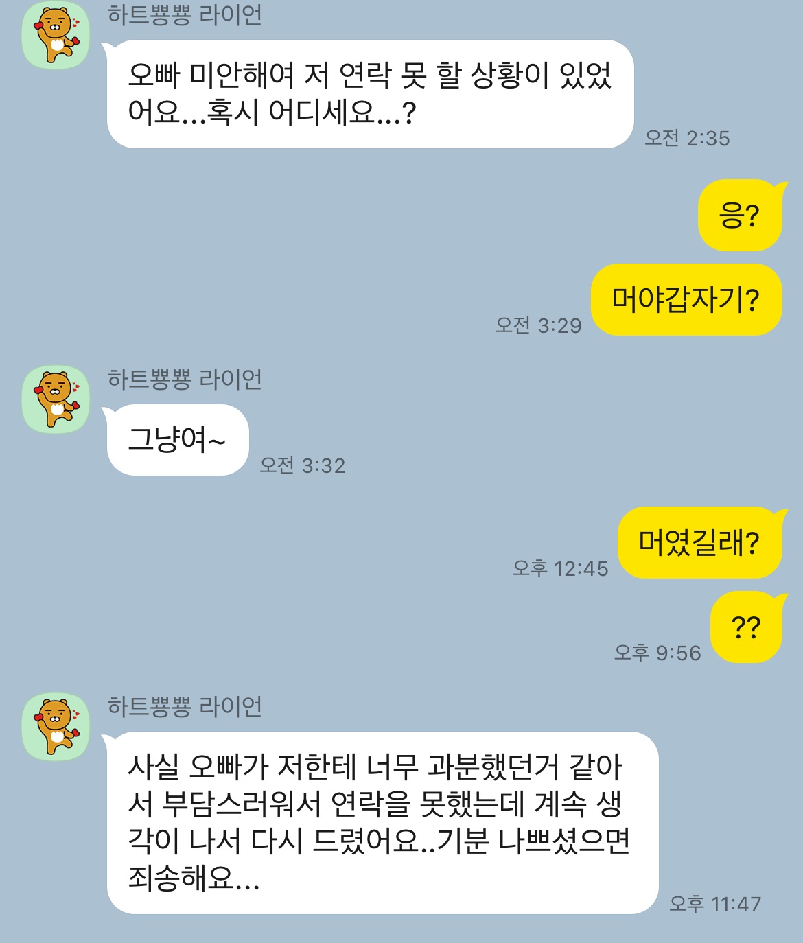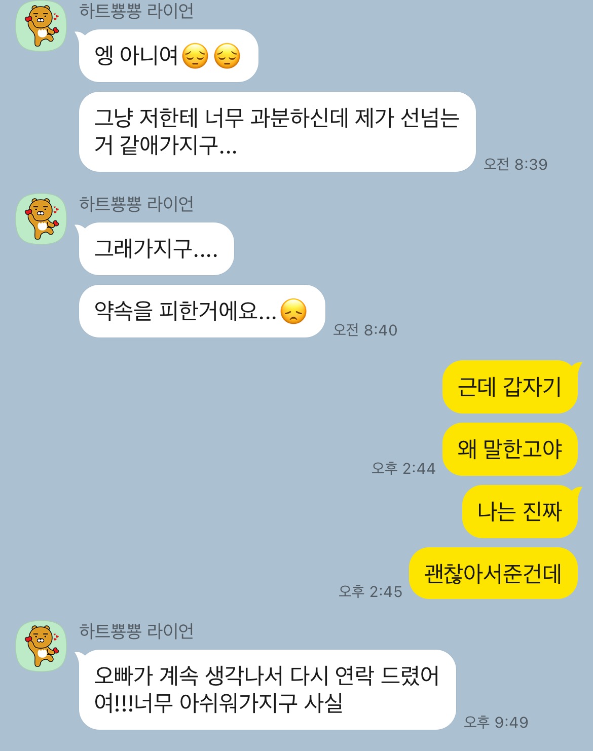 ¿¬¶ô ÀßÇÏ´Ù°¡ º¸±â·Î Çѳ¯ °©Àڱ⠾갡 Àá¼ö¸¦ ź°Å¾ß.