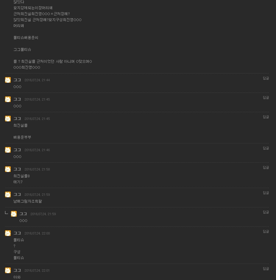 ¡ã ´ÙÀ½±Û ¿¬¿¹ÀÎÀÌ °ÞÀº ¹«¼­¿î ½ÇÈ­ #1, ¸®¾ó ½ÇÈ­·¡... ¹ÌÁöÀǹ®È­ÀÎ 7 0 0 2,414 2016-09-16 [20:18]