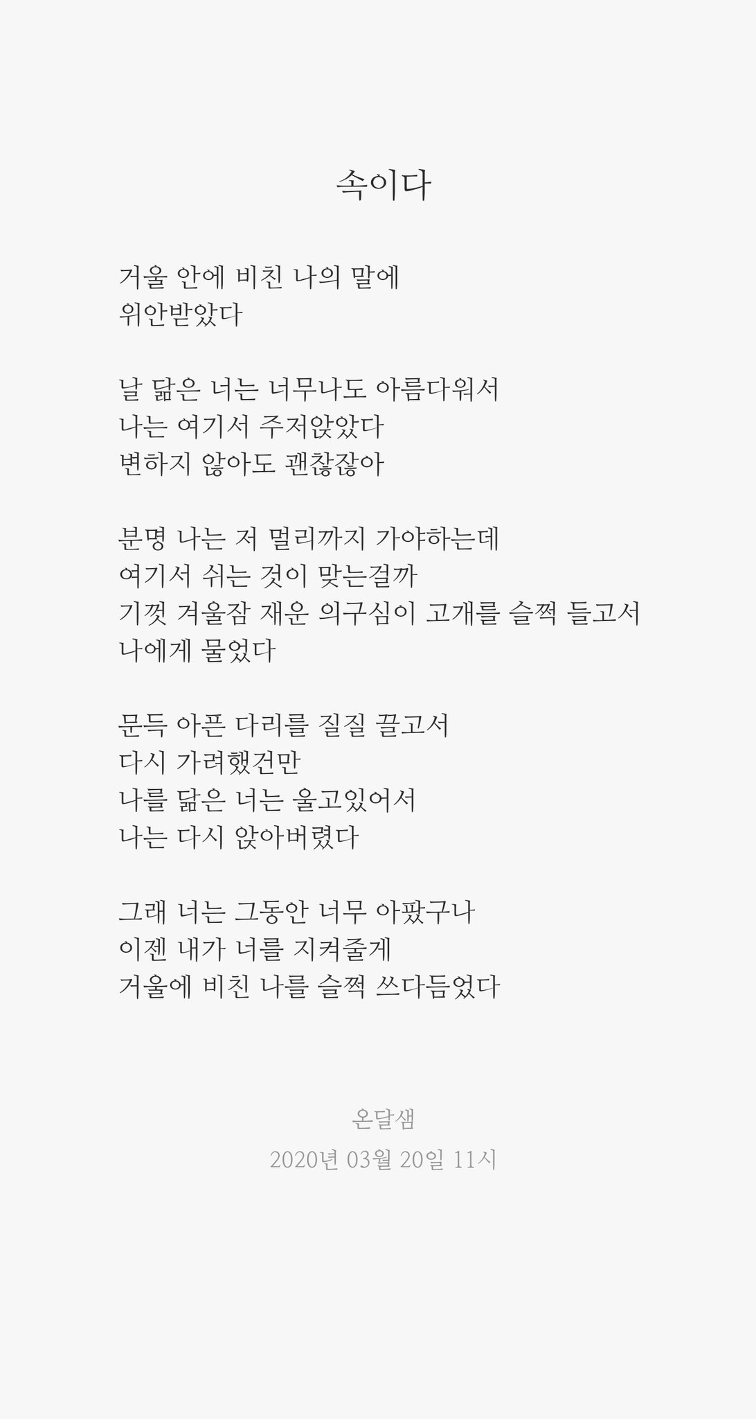 ±×·¡. ¶Ç¾Æ¸®Æ° ³Ê´Â Â÷°¡¿î ÇǺθ¦ °¡Á³±¸³ª. ³»°¡ ³Ê¸¦ ²¸¾È´Â´Ù¸é ¾î¶³±î. »ç¶÷°ú »ç¶÷ÀÌ Ã¼¿ÂÀ» ³ª´ ¶§, ºñ·Î¼Ò °Å±â¼ ¸¶À½ÀÌ »ý±ä´Ù°í ÇÑ´Ù¸é. ³ÊÀÇ Â÷°¡¿òÀ» ³»°¡ °¡Á®°¡°í¼ ³×°¡ ³ªÀÇ µû¶æÇÔÀ» °¡Á®°£´Ù¸é, ¿ì¸®¿¡°Ô »ý±â´Â °ÍÀº ¹«¾ùÀϱî. »ç¶÷À» ³»Ä¡¸ç Ȧ·Î ÀÖ´Â ³Ê¿¡°Ô ¼Õ ³»¹Ð¾îº¼°Ô.