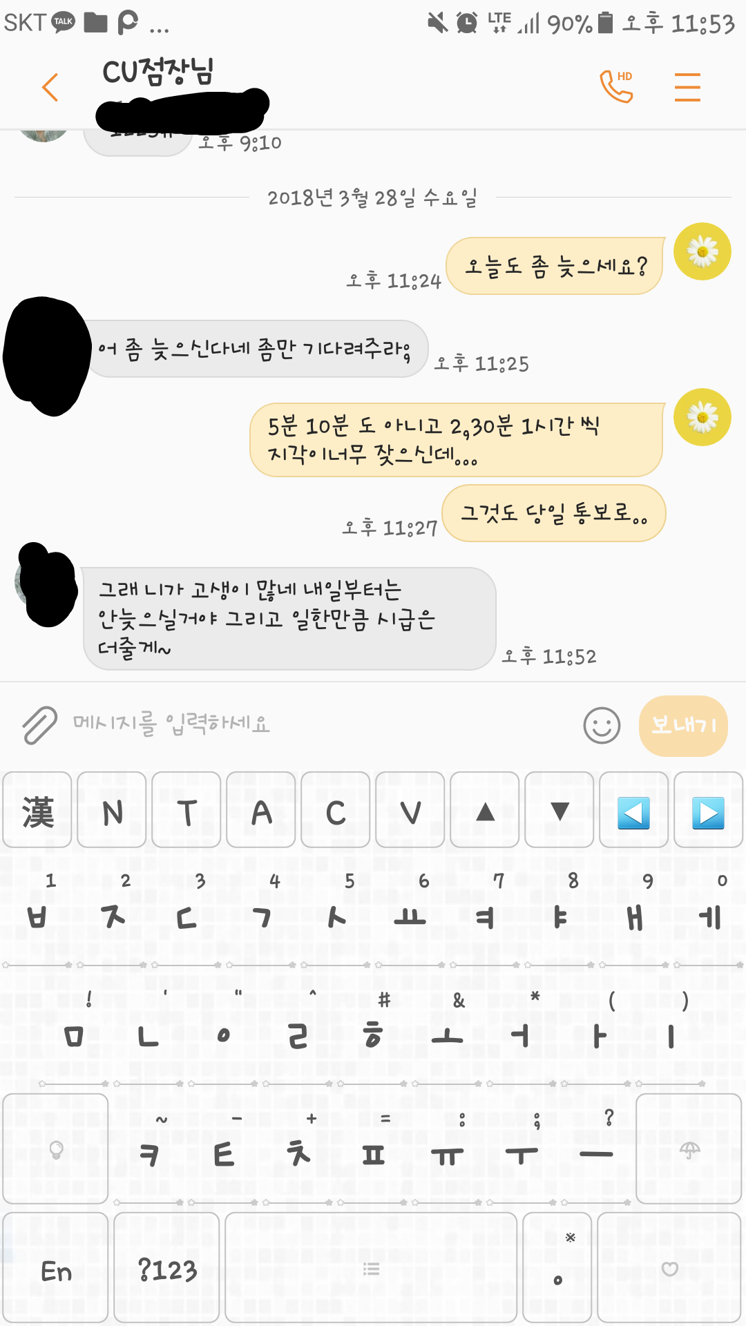 ³»°¡ ÀÌ ÆíÀÇÁ¡ ¾Ë¹Ù¸¦ ½ÃÀÛÇÑ°Ô 2¿ù ¸»ÂëÀΰ¡ ¿´¾î ±×·¯´Ï±î Á¦µ¥·Î ¹Þ´Â°Ç 3¿ù´Þ¿ù±Þ ºÎÅÍÁö ³» ¾ÕŸÀÓÀÌ Á¡Àå´Ô ÀÌ°í ³» µÞŸÀÓÀÌ Á¡Àå´Ô ¾î¸Ó´Ï¾ß ±×³É ÆíÇѵ¥·Î ¾ÆÁÖ¸Ó´Ï ¶ó°í ÇÒ°Ô