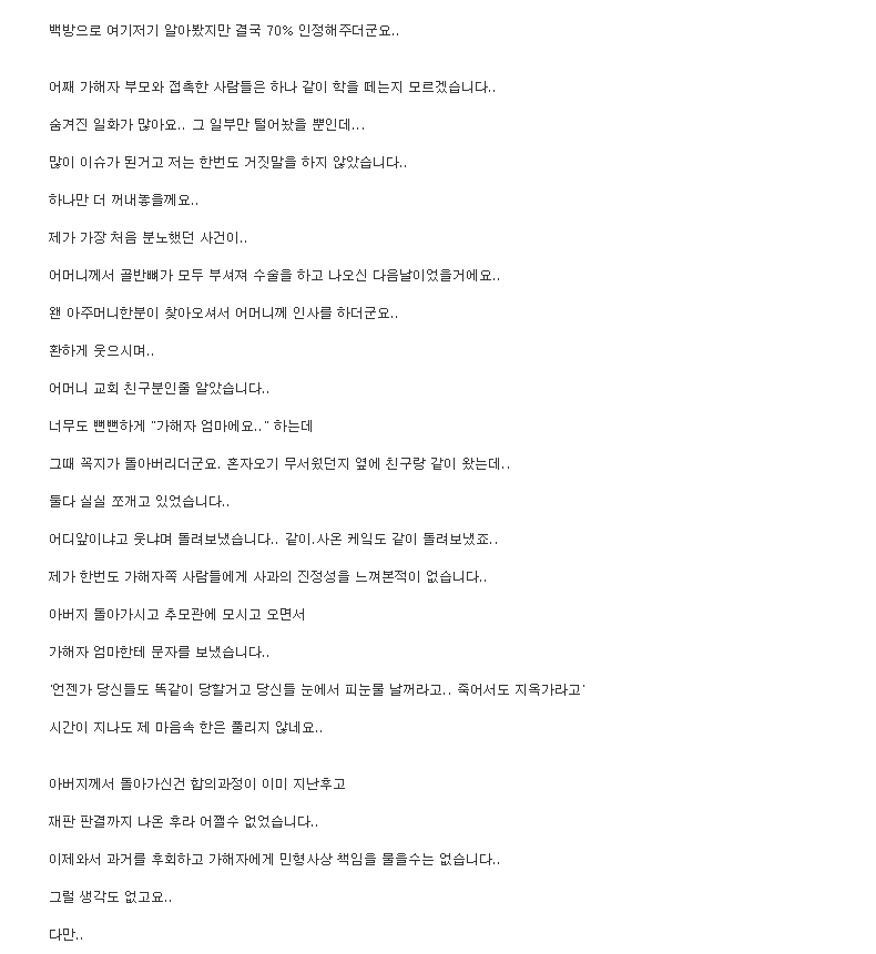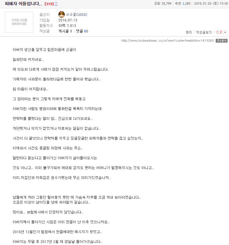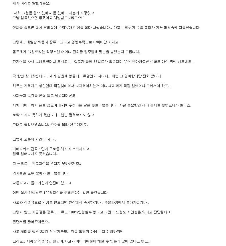 ³»°¡ ±Ã±ÝÇѰŴ " ¼Â° "¿¡ ³ª¿À´Â ³»¿ëÁß¿¡ "º¸Çèȸ»ç¸¦ ÅëÇØ¼ ¾Ë°ÔµÇ¾ú´Ù" °í Çϴµ¥... ±×°É ¾Ë°í ³ª¼µµ ÇÇÇØÀںеéÀ» ã¾Æ°¡¼ »ç°ú¸¦ ÇßÀ½??... À±Û ³»¿ë´ë·Î ÀÚ½ÅÀº Á×À»Á˸¦ Áö¾ú°í Áö±Ýµµ ´µ¿ìÄ¡¸Õ¼ »ì°íÀÖ´Ù¸é º¸ÅëÀº Àú¼Ò½ÄÀ» µèÀÚ¸¶ÀÚ ¹Ù·Î ã¾Æ°¬¾î¾ßÇÏ´Â°Ô Á¤»óÀϰÅÀÓ.. ±×·±µ¥ À§¿¡ ³»¿ë¿¡´Â ã¾Æ°¬´Ù´Â ³»¿ëÀ» ¸øº½...