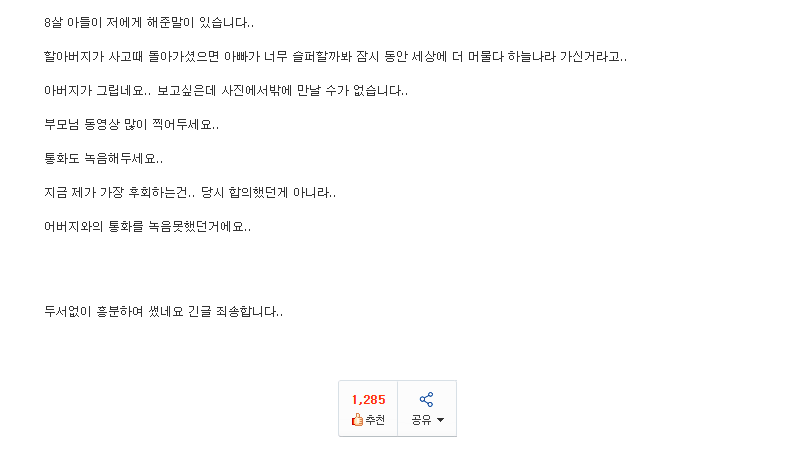 »ç°ú ÇѹøÀÌ¸é µÇ´Â ÀÏÀÌ ±×·¸°Ô »ç¶÷À» ¸î»·¾¿ ¿ï¸®³Ä.. °¡½¿¿¡ ´ë¸ø¹Ú°í ÁøÂ¥ ±×·¸°Ô »ì°í ½ÍÀ»±î ±× Á˸¦ ¾î¶»°Ô °¨´çÇÏ·Á°í