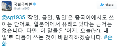 Á¦°¡ ~ÇßÀ¸¸é ÁÁ°Ú´Ù ÇÏ°í ¾´±Û¿¡ ³í¸® ÆÑÆ® ÀÌ·± ´ñ±ÛÀÌ ´Þ·Á¼ ÈïºÐÇß¾ú³×¿ä. À§¿¡ ´ñ±Û ´Ü°Å´Â »ç°úµå¸³´Ï´Ù. Á¦°¡ ¿ì¸®¸»À» »ç¿ëÇØ¾ß ÇÑ´Ù´Â ÀÌÀ¯´Â º»¹®¿¡ ³ª¿ÍÀÖµí Çò°¥¸®±â ¶§¹®ÀÔ´Ï´Ù. Àú±â ±ÝÀÏÀ» ¸ô¶ó ¸éÁ¢À» ¸øº»»ç¶÷ÀÌ ¹«½ÄÇѰÍÀÌ ¾Æ´Ï¶ó ¸éÁ¢ÀÏÀ» ¾Ë·ÁÁÖ´Â Áß¿äÇÑ ¹®ÀÚ¸¦ Ç¥ÁØ¾î ´ë½Å Áß±¹ ÀϺ»¿¡¼ ¿Â '±ÝÀÏ' À̶õ´Ü¾î¸¦ »ç¿ëÇØ È¥¶õÀ» ÁØ »ç¶÷ À߸øÀ̶ó°í »ý°¢ÇØ¿ä .¹®ÀÚ¸¦ '¿À´Ã'À̶ó°í º¸³ÂÀ¸¸é Àú »ç¶÷ÀÌ Çò°¥·ÈÀ»±î¿ä? ¿ì¸®³ª¶ó´Â ÀÌ»óÇÏ°Ô °ø½ÄÀûÀÎ ÀÚ¸®¿¡¼± ¾î·Á¿î ¹®ÀåÀ» »ç¿ëÇØ¾ßÇÑ´Ù´Â »ý°¢À» Çϴ°Š°°¾Æ¿ä. °ø½ÄÀûÀÎ ÀÚ¸®ÀÏ ¼ö·Ï Çò°¥¸®Áö ¾Ê°Ô ½¬¿î´Ü¾î ¿ì¸®¸»À» »ç¿ëÇßÀ¸¸é ÇÏ´Â°Ô Á¦ »ý°¢ÀÌ¿¡¿ä.