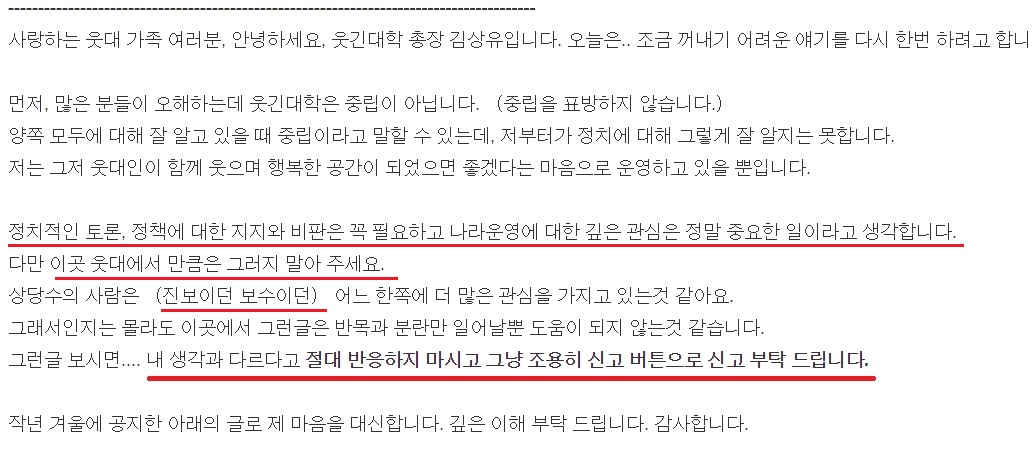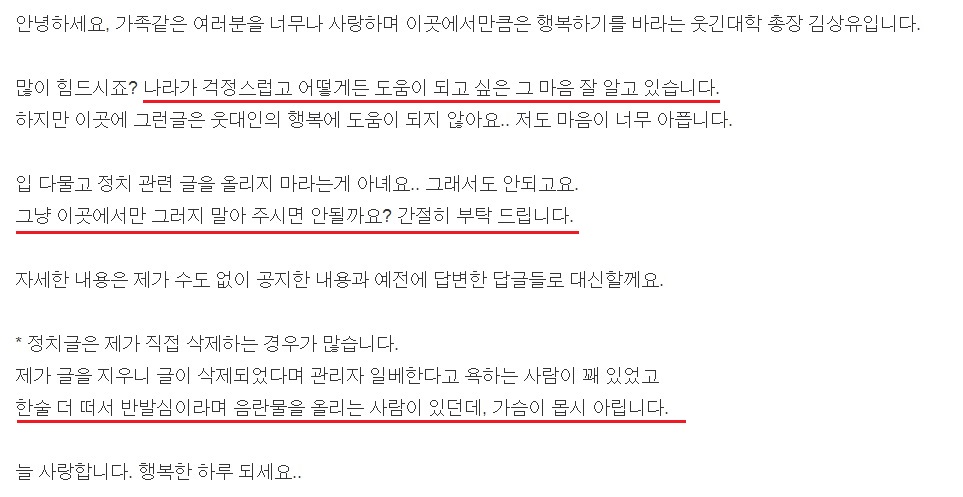 ºí¶óÀε带 ÇØºÃÀÚ Á¦ ´«¿¡¸¸ ¾Èº¸ÀÏ »Ó, ÃÑÀå´ÔÀ̳ª ¿ô´ë¿¡¼ ¸¸ÅÀº Á¤Ä¡±ÛÀ» º¸°í ½ÍÁö¾ÊÀº ¿ô´ëÀεéÀº °è¼Ó º¸°Ô µÇ°Ú±º¿ä.