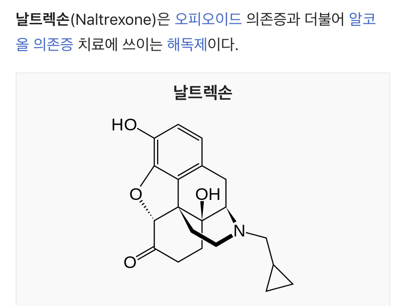 º»¹®¿¡ ³ª¿Â Ç×°¥¸ÁÁ¦ÀÎ naltrexoneÀº Opioid antagonist·Î, À̸¦ blockingÇÏ°Ô ÇØ¼ ¼úÀÌ Àç¹Ì¾ø°Ô ¸¸µé¾îÁÝ´Ï´Ù. ÇÏÁö¸¸ »ç¿ëÇÏ¸é ´ç¿¬È÷ »ç¶÷ ÀÚüÀÇ ÇູÀ̳ª Áñ°Å¿òµµ ¾î´ÀÁ¤µµ ¾Ñ¾Æ°¡°ÚÁÒ? °°Àº ¹æ½ÄÀ¸·Î Ȱ¼ºÈ°¡ µÇ´Ï±î¿ä... ±×·¡¼ ºÎÀÛ¿ëÀ¸·Î ÀÚ»ìÀ§Çèµµ°¡ Áõ°¡ Çϴ°ÍÀÔ´Ï´Ù.
