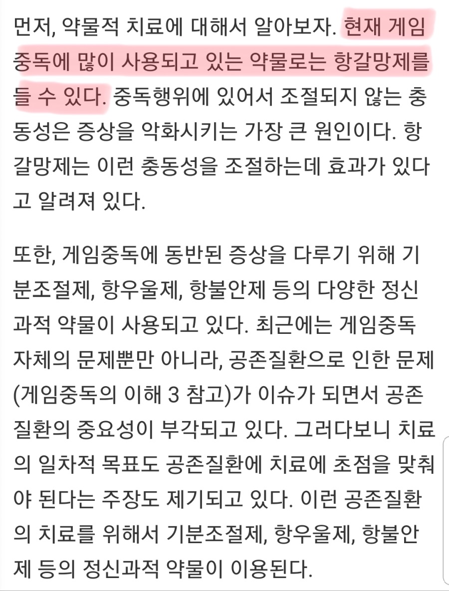 °ÔÀÓÁßµ¶À» Áúº´À¸·Î ±ÔÁ¤Çϰí Ä¡·áÇØ¾ßÇÏ´Â ´ë»óÀ¸·Î ¹Ù¶óº»´Ù¸é ¾à¹° Ä¡·áµç ¹¹µç ¹æ¹ýÀ» µ¿¿øÇؼ Ä¡·áÇØ¾ß°Ú°í ±× ¼ö´ÜÀÌ ¾à¹°Ä¡·á¶ó°í ÇÑ´Ù¸é ÇÒ ¸»¾ø°ÚÁö¸¸, °ÔÀÓÁßµ¶Àº Áúº´µµ ¾Æ´Ï°í º»ÀÎÀÇ ÀÇÁö·ÂÀ̳ª ÀÚ±âÅëÁ¦·Â ¾àȶó±âº¸´Ù °ÔÀÓ¿¡ ºüÁ®µé°Ô µÇ´Â ÁÖº¯È¯°æÀÌ ¹®Á¦¶ó°í º½.