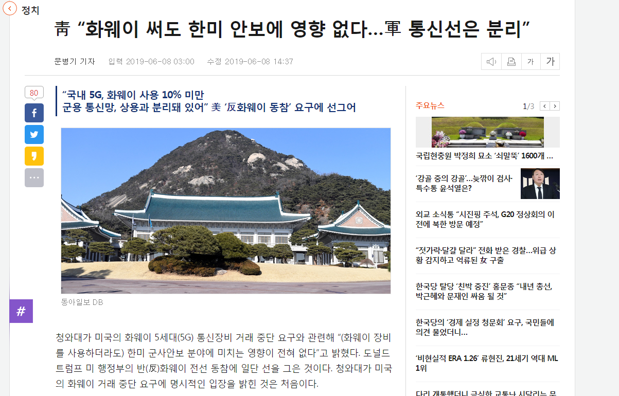 ¹Ì±¹ÀÌ °ÆÁ¤Çϰí ÀÖ´Â°Ç Çѹݵµ ¶¥¼Ó¿¡ È¿þÀÌÀÇ Åë½ÅÀåºñ°¡ ±ò¸± °æ¿ì ¹Ì±¹ÀÇ ±º»çÁ¤º¸°¡ Åë½ÅÀåºñ¸¦ Åë°úÇÏ°Ô µÇ´Âµ¥ È¿þÀÌ Åë½ÅÀåºñ¸¦ Åë°úÇÒ °æ¿ì ¹Ì±º Á¤º¸°¡ Áß±¹ÂÊÀ¸·Î ÇØÅ· ´çÇÒ °ÍÀ» ¿ì·ÁÇϴ°ÅÀÓ / ¹Ì±¹ÀÇ ÀÔÀåÀº È¿þÀÌ ÅëÁø Àåºñ°¡ ±ò·Á ÀÖ´Â Áö¿ª¿¡¼´Â ÁÖÇѹ̱ºÀÌ ÁÖµÐÇÒ ¼ö ¾ø´Ù´Â °Å¾ß / È¿þÀÌ ÅëÁø Àåºñ°¡ ±ò·Á ÀÖ´Â Áö¿ª¿¡ ÁÖÇѹ̱ºÀÌ ÁÖµÐÇÒ °æ¿ì ÁÖÇѹ̱ºÀÇ ÁÖ¿ä Á¤º¸°¡ Åë½Å¼±À¸·Î ÀÎÇØ¼ ÇØÅ·´çÇÒ¼ö°¡ Àֱ⠶§¹®¿¡ ÁÖÇѹ̱ºÀº È¿þÀÌ Åë½ÅÀåºñ°¡ ±ò¸° Áö¿ª¿¡´Â ÁÖµÐÇÒ¼ö°¡ ¾ø¾î / ¿¤Áö´Â ÀÌ¹Ì ¼öµµ±Ç°ú °æ±âµµ ºÏºÎ Áö¿ª¿¡ È¿þÀ̸¦ ´Ù ±ò¾Æ¹ö·È°í ¿¤Áö´Â Àü±¹ÀûÀ¸·Î Çѹݵµ Àüü¿¡ È¿þÀÌ Åë½Å Àåºñ¸¦ ±ò·Á°í ÃßÁøÇϰí ÀÖ¾î / ¸¸¾à¿¡ ¿¤Áö°¡ Çѹݵµ Àüü¿¡ È¿þÀ̸¦ ±ò¾Æ¹ö¸®°Ô µÇ¸é ¹Ì±¹Àº ¾ÆÁÖ Èûµç ¼±ÅÃÀ» °¿ä ´çÇÏ°Ô µÇ´Â°Å¾ß / ¹Ì±¹ÀÇ ¼±Åà 1 = È¿þÀ̰¡ ¹Ì±º ÇØÅ· Ç졂 ¸»°Ç ±×³É Çѹݵµ¿¡ °è¼Ó ¹Ì±ºÀ» ¹èÄ¡ÇÑ´Ù / ¹Ì±¹ÀÇ ¼±Åà 2 = ¹Ì±ºÀÌ ÇØÅ· ´çÇϴ°ÍÀ» ¹æÁöÇϱâ À§Çؼ Çѹݵµ¸¦ Æ÷±âÇÑ´Ù / ´ëÇѹα¹ Çå¹ý Á¦37Á¶¿¡ ÀÇÇÏ¸é ±¹°¡¾Èº¸¿¡ °ü·ÃµÈ »ç¾ÈÀº ±¹°¡°¡ ³ª¼¼ ±â¾÷ÀÇ ÀÚÀ¯¿Í ±â¾÷ÀÇ ±Ç¸®¸¦ Ä§ÇØÇÒ ¼ö ÀÖ´Ù°í µÇ¾î ÀÖÀ½