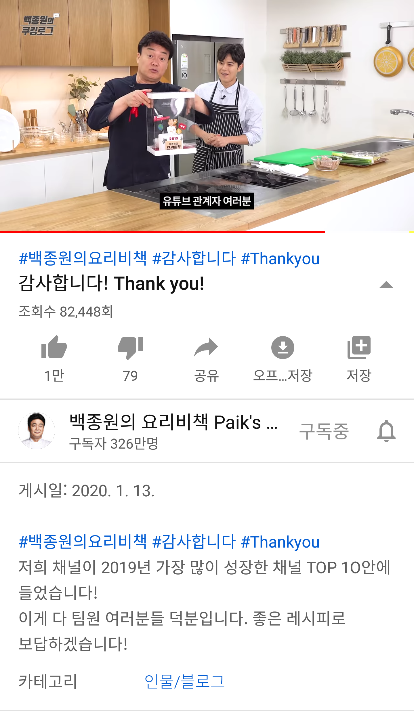 À¯Æ©ºê ¼±Á¤ '2019 °¡Àå ¸¹ÀÌ ¼ºÀåÇÑ Ã¤³Î' À强±Ô[¿öÅ©¸Ç] ¼¼°è 2À§.¹éÁ¾¿ø ¼¼°è 3À§