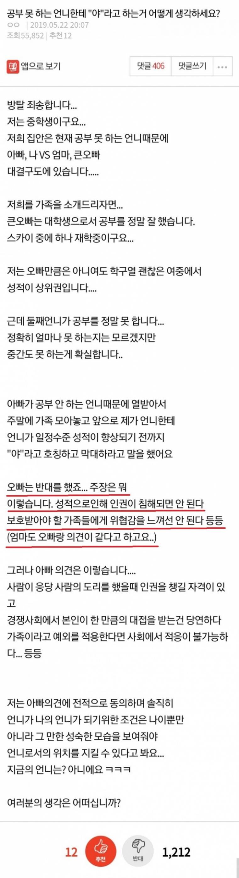 °øºÎ¸¦ ¸øÇÏ´Â°Ç Â÷º° ¹ÞÀ» ÀÌÀ¯°¡ ¾Æ´Ô, ÀÏ´Ü Â÷º° ¹ÞÀ» ÀÌÀ¯¶ó´Â°Ç ¸¸µé¾î¼µµ ¾ÈµÇ´Â°Å°í ±×¸®°í °øºÎ ¸øÇÑ´Ù°í Â÷º°ÇÏ´Â ±× ¾Öºñ´Â °¡Á¤±³À°À» ¸ø ¹ÞÀº³ð¿¡ ÃÖÈÄÀΰŠµ·¸¸ ¹ú¸é ¹¹ÇØ °¡Á¤±³À°ÀÌ ¾ÈµÅÀִµ¥