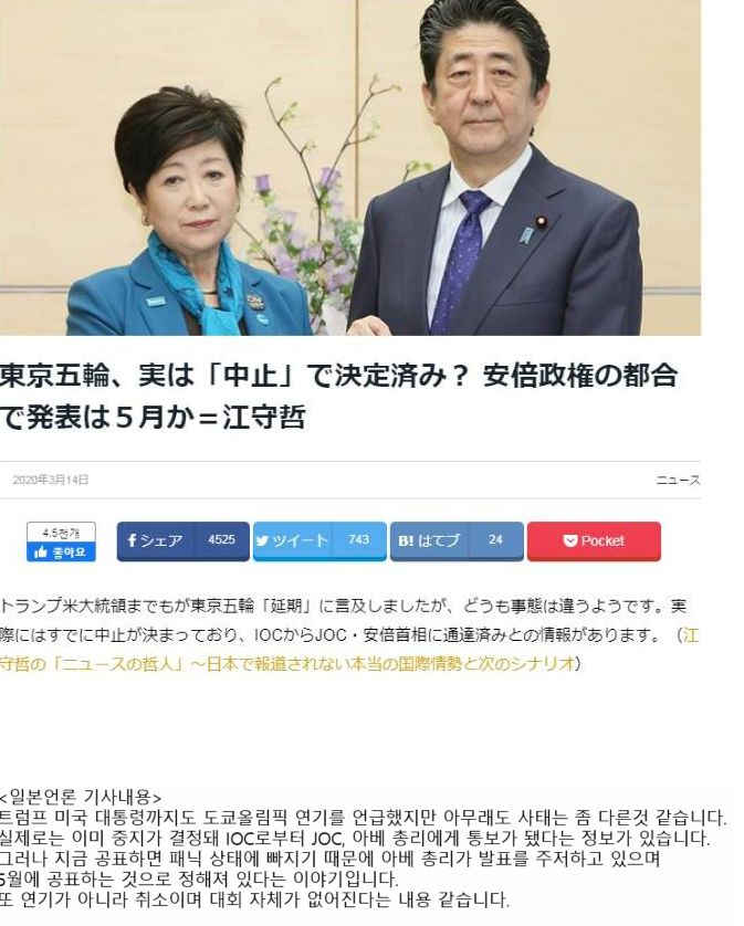 http://www.topstarnews.net/news/articleView.html?idxno=737362 À̰ŠÀÐÀ¸´Ï±ñ ´ëÃæ ÀÌÇØµÊ. ¿ä¾àÇÏÀÚ¸é 5¿ù¸»³»Áö 6¿ùÃʱîÁö ÀϺ»ÀÌ ´ëÃ¥À» °±¸ÇÏÁö ¾ÊÀ¸¸é IOC°¡ ÀϹæÀûÀ¸·Î ¿Ã¸²ÇÈÀ» Ãë¼ÒÇÒ ¼ö ÀÖ°í 2020 µµÄì ¿Ã¸²ÇÈ °³ÃÖ ¿¬±â°¡ ¾Æ´Ñ 2024 ÆÄ¸® ¿Ã¸²ÇÈÀ¸·Î ³Ñ¾î°¡°Ô °è¾àÀ» Çß´Ù´Â ³»¿ëÀÓ.