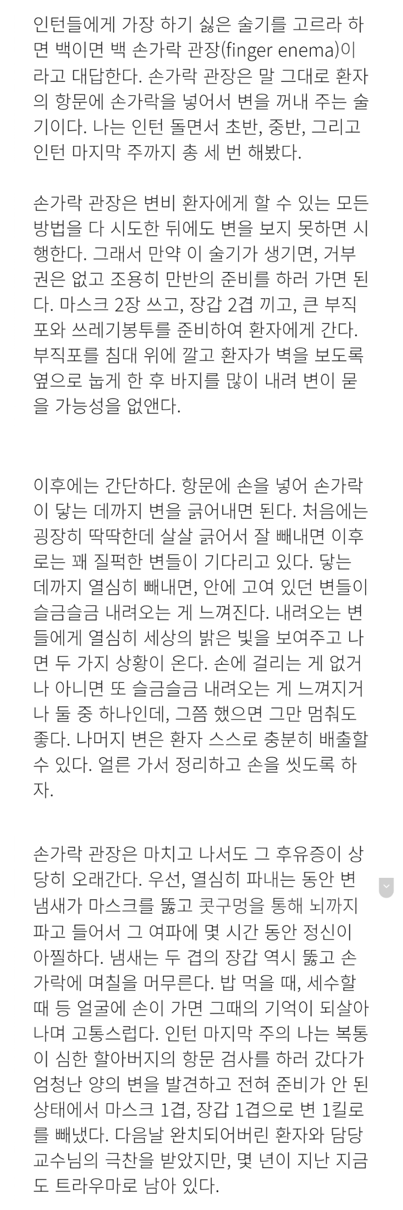 20³âÂëÀü °üÀåÀ» Çϰí ÈÀå½Ç¿¡ °£ ÇҾƹöÁö°¡ ¿À½ÃÁö ¾Ê¾Æ¼ ÈÀå½Ç¿¡ °¬´õ´Ï °üÀå¾×°ú º¯ÀÌ »õ¾î ³ª¿Â ¹°ÀÌ ¹Ù´Ú°ú ¹ÙÁö¿¡ Èï°ÇÇϰí ÇҾƹöÁö´Â °ÅÀÇ ¾²·¯Áö´Ù½ÃÇÇ º¯±â¿¡ ¾É¾Æ°è½Ã±æ·¡ ÀÚ¹ßÀûÀ¸·Î ¼Õ°¡¶ô °üÀåÀ» ÇØµå·È´Ù. °úÁ¤ÀÌ ¹Ì¼÷ÇØ¼ ³» ¿Ê°ú ¼Õ¿¡µµ º¯ÀÌ ¹¯¾ú¾ú´Âµ¥.. ³ªÁß¿¡ ÀÀ±Þ½ÇÀ» ³ª°¡½Ã´ø ÇҾƹöÁö²²¼ 90µµ·Î ÀλçÇÏ½Ã¸ç °í¸¿´Ù°í ÇϽô ¼ø°£ ¸ðµç ¼ø°£Àº ¾Æ¸§´Ù¿î Ãß¾ïÀÌ µÇ¾î ³²°ÔµÇ¾úÁö.. ±×¶§ºÎÅϰ¡ ³ë¶õ ±×°ÍÀ» ÁÁ¾ÆÇÏ°Ô µÈ °ÍÀÌ.¤¾