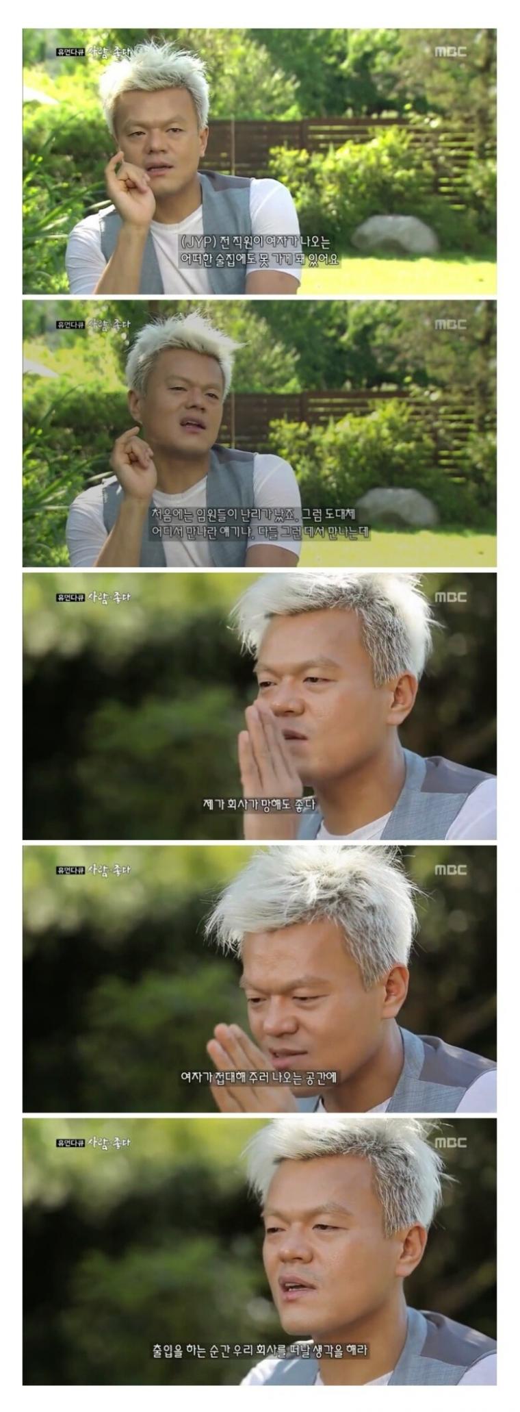 JYPÅõÀÚ¾÷ü(ÄÚÄÚ³Ó¿öÅÍ»ç¾÷) ÂÊ Á÷¿øÀ¸·Î ÀÏÇß¾ú´Âµ¥, ¹ÚÁø¿µÀÌ °æ¿µ¿¡ °ü½ÉÀÌ ¾Æ¿¹ ¾ø´Ù°í °ü°èÀÚÇÑÅ× µé¾úÀ½. ±×³É µýµû¶ó »îÀ» ¿øÇϰí ÀÛ°î, ³ë·¡, ÀÛ»ç, Æ®·¹ÀÌ´× Âʸ¸ ¸Ã´Â´Ù ÇßÀ½. ±×·¡¼ ±×·± ÂÊÀº Àü¹®°æ¿µÀÎÀÌ ¸Ã°í ±× ¹ØÀ¸·Î Àü¹® Á¾»çÀÚ°¡ ÀÏÇÑ´ÙÇßÀ½. ±×°Ô Áö±Ýµµ À̾îÁö´Â µíÇÔ. ÀÌ°Ô YG¶û ´Ù¸£°Ô ¹®¾î¹ß½Ä °æ¿µ ¾È ÇØ¼ ±ò²ûÇϱ⵵ ÇßÀ½. ³»°¡ ¾Ë±â·Ð »ç¾÷È®ÀåÀÌ ½ÅÁßÇßÀ½. ¶Ç ¿¬¿¹ÀÎ ¼·¿Ü·Î ºê·£µå ÆÄ¿ö ¿Ã¸®ÀÚ ³ë·¡ºÎ¸£´Ï±î ¹ÚÁø¿µÀÌ Á÷Á¢ ¸ðµ¨·Î ³ª¿À±âµµÇßÀ½. ÀÌ ¶§´Â ÅäÅä ÀÌÈÄ·Î ±â¾ïÇÔ. ¹ÚÁø¿µÀÌ ÅäÅä°¡ ÇÒ ¶§ ÄÚÄ«Äݶó ÁöÄÚ(ÄÚÄÚ³Ó¿öÅÍ)°¡ ¹«µµ °ø½Ä½ºÆùÀ̾ú´Âµ¥ ¹ÚÁø¿µÀº ±×°Å ÇÑ ¸ð±Ýµµ ¾È ¸¶¼ÌÀ½. ´ë½Å Åõ¼¦ ¸î °³ ³ª¿Í¼ Ç×ÀÇÇß´õ´Ï JYP¿¡¼ MBC¿¡ °ü·Ã³»¿ë À̾߱âÇÑ °É·Î ¾Í. Á÷¿ø ÇÑ ¸íÀÌ °©Áú Á» Çߴµ¥, ¸¸¾à¿¡ ´Ù¸¥ ¾ÆÀÌÅÛÀ̶ó¸é YGº¸´Ù´Â JYP¶û ÀÏÇÏ°í ½ÍÀ½. ´Ùµé ÀÏÀº ÀßÇϴµ¥ JYP°¡ ¹º°¡ ´õ ±ò²ûÇßÀ½. °³ÀÎÀû °æÇèÀÓ