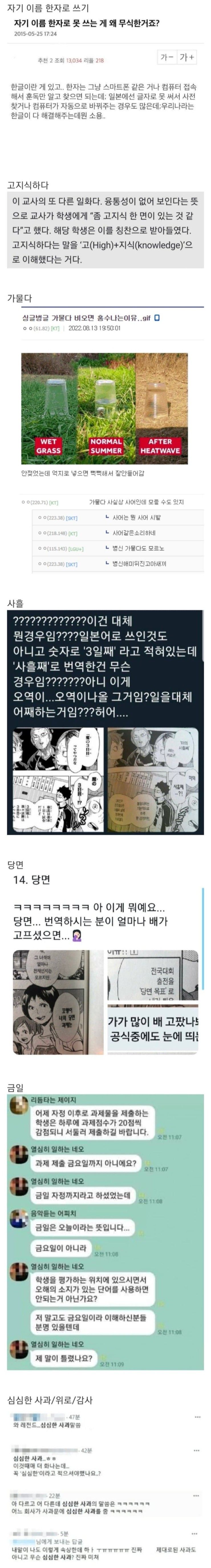 ÀÏ´Ü Àú·± ´Ü¾îµéÀÌ ÀþÀº »ç¶÷µé »çÀÌ¿¡¼ ¾È¾²±â´ÂÇÔ ±×·±µ¥ »çȸ»ýȰÀº ÀþÀº »ç¶÷µé¸¸ ÇÏ´Â°Ô ¾Æ´Ï¶ó ´Ù¾çÇÑ ¿¬·ÉÃþ ÀÏ´ÜÀº 20´ëÀÌ»ó 60´ë±îÁö ¾÷¹«ÀûÀÌµç ¹¹µç ¸¸³ª¼ ¾÷¹«¸¦ º¸´Âµ¥ ±×·± »ç¶÷µéÀÌ »ç¿ëÇÏ´Â ¿ë¾î ¾ð¾îµé¿¡´ëÇØ¼ ¸ð¸¦¼ö ÀÖÁö¸¸ ±×°É ¿Ö¾¸ À̶ó°í ÇÏ´Â°Ç ¾Æ´Ï¶ó°íº½.... Àú±â ±³¼öÇÑÅ× À̾߱â Çϴ°ŵµ µü Çб³ ¼±»ýÇÑÅ× ÇÏ´ø°Å ±×´ë·Î ÇÔ ±³¼ö=¼±»ýÀ̶ó°í »ý°¢ÇÏ´Â ¾ÖµéÀÌ ¸¹Àºµí....