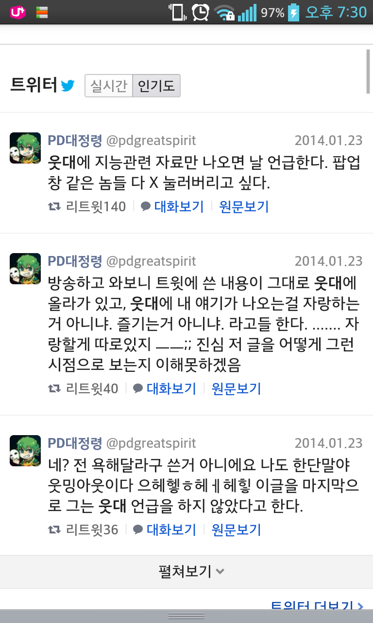 ±×¸®°í À̱ÛÀÌ Æ®À§ÅÍ¿¡¿Ã¶ó¿È ¡æ ±×°Ô¶Ç ¿ôÀÚ¿È ¡æ ´Ù½Ã Æ®À§Åͤý¤ý ¹«Çѹݺ¹